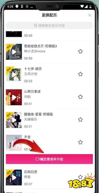 7.选择你要使用的音乐,点击【确定使用并开拍】