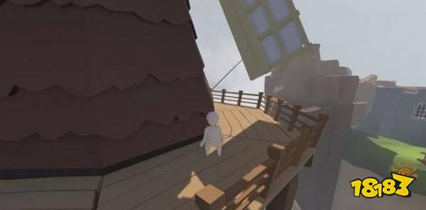 对面平台有一个正在旋转的风车,直接一路来到风车二层。