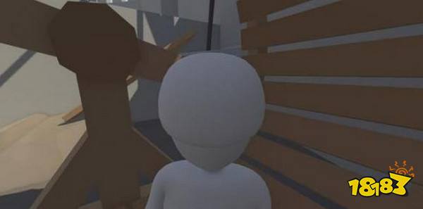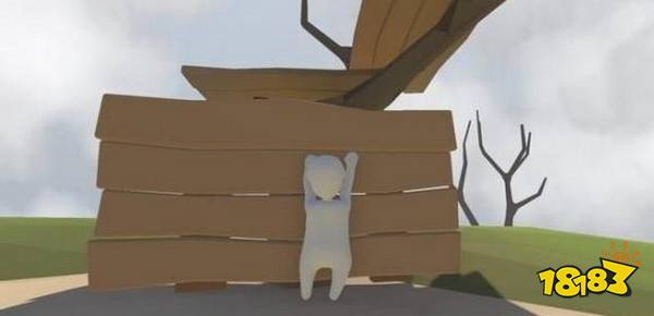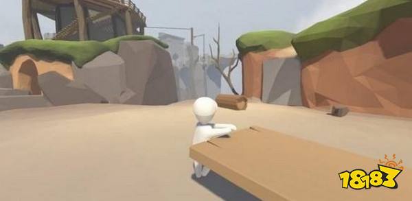 捡起散落的一条木板,横着架到上图位置形成一个木架。
