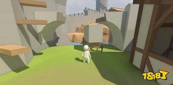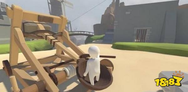 投石机将Bob甩到城门上沿,抓住墙壁后,盖着城门的木板会向外倒下,松手使Bob落下。