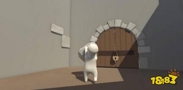 来到城堡关卡,下图图为Bob身处的第一个场景,双手拿起旁边的石块冲向木门上的锁头,连续撞击两三次即可将锁破坏。