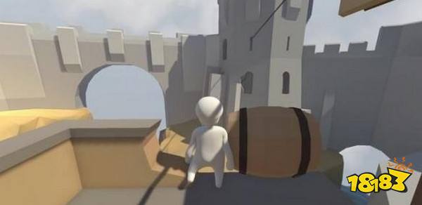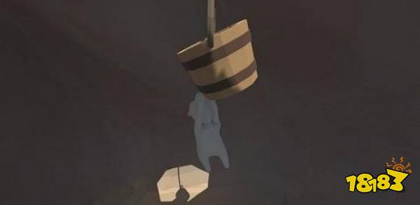 来到木屋的二层,将这里的木桶放倒,对准阳台缺口推下去,木桶会顺着滑梯滚到对面。