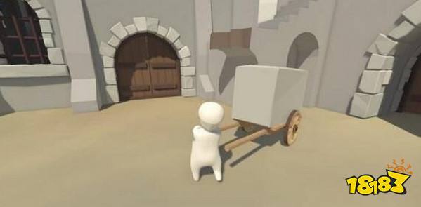 借助小车爬上高处,从上方平台跳下来到城门另一侧。