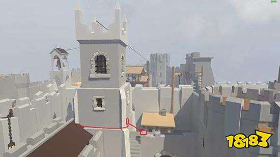 拉着木桶来到下图位置,将木桶立起来,借助木桶爬上平台前进,在最顶端翻窗进入城堡。