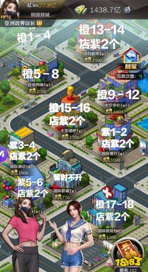 第一点升级店铺一般按商会科技加成顺序升,像SPA馆、餐厅等级普遍低点不会去放橙人。第二点要升实力紫色羁绊加成的那几个肯定星级和等级都高放弃不用有点可惜