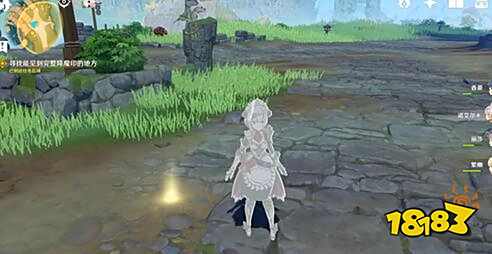 首先我们下到望舒客栈门口,在这里可以看到两个大石头,开启元素视野之后就能够看到地上有任务道具了。
