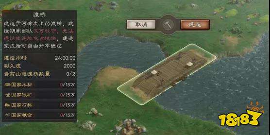 以渡桥为例,山道、渡桥均需要在地图上的小锤处建造。