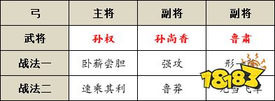 就战法而言,鲁肃的济贫好施完美地填补了形一阵3-5回合的弱势。但就契合程度来说,孙尚香更偏向于爆发一点儿,没必要带形一阵来克制自己,对她来说,组个前几回合打爆对手的队伍会更加合适。