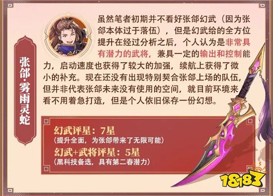 三国志幻想大陆张郃雾雨灵蛇强度分析