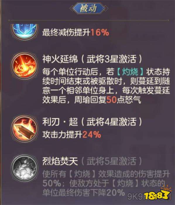 配合另一个核心,周瑜(5星)。灼烧的效果基本不会断,而且还降低对面的造成伤害。输出拉闸,没什么好说的。