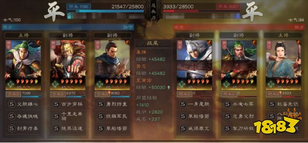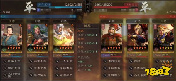 2. SP诸葛亮必须携带草船来清理对面的水攻;关兴携带千里+刚勇来保障输出的稳定性。