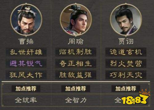 推荐阵容:曹操 周瑜 贾诩(箕形阵)