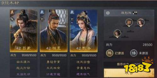 推荐阵容:夏侯惇 曹操 司马懿(箕形阵)