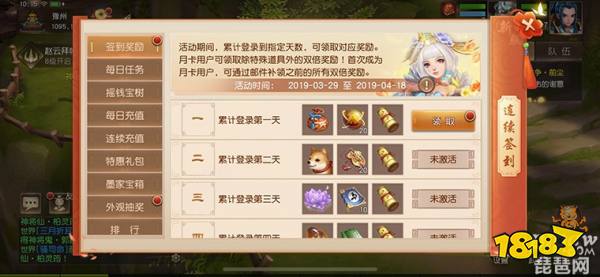 新服玩家每日登录累计签到,即可获得步步生莲(10天)、跟宠旺财、木牛流马等高级奖励
