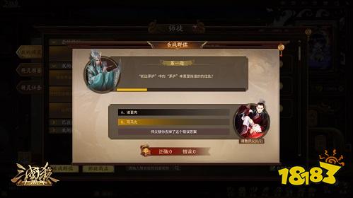 师徒模式是玩家共同成长的快速途径,通过不同的师徒任务,如共同完成一局游戏、“舌战群儒”等领取各种丰厚奖励,进而增加师徒级别和师徒里程。其中“舌战群儒”会向玩家随机提供6道题目,玩家每天都有一次参与机会,不会的问题还可以请教师父(无论是否出师都可请教2次)。相当于系统每天给玩家提供一次了解游戏特色与三国历史的“扫盲课”。
