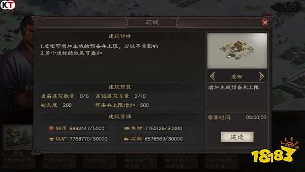 虎帐可增加主城的预备兵上线,分城不受影响,多个虎帐的效果可叠加。