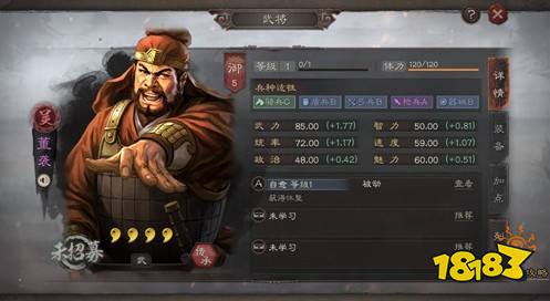 如果我们实战抽不到董袭的话,也可以使用更强的合军聚众战法,该战法在满级的时候可以提供124%的兵力恢复。但是该战法属于S级别的稀有战法,只能通过拆解袁绍和徐晃获得。并且还需要14名橙色武将演练。所以不太适合平民玩家使用。
