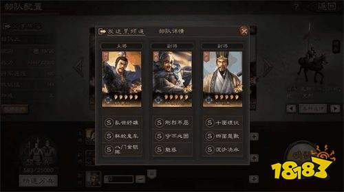该阵容由主将曹操(辅助)、副将夏侯惇(防御)、副将程昱(主谋略输出)组成,兵种选择骑兵,可以达到3S骑兵组合,同时激活魏国阵营加成。