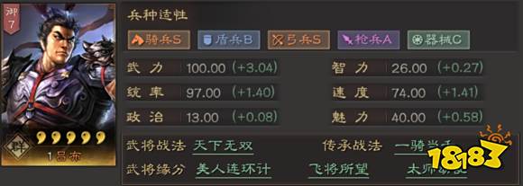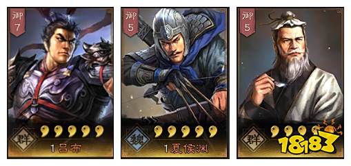 【夏侯渊】能提供一些控制,兵锋和折冲即能为吕布带来非常不错保护和增益,也能作为第二点输出。