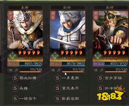 马超:纯粹的菜刀,PVE远比PVP强度高,他的战法这里推荐瞋目横矛、一骑当千、暴戾无仁、兵锋、强攻、手起刀落等。