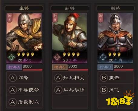 S2赛季的五级地副将多带有控制技能,因为战法的触发概率,难度排序有可能会波动。哪怕是下面推荐的两套敌军,因为潘凤的击溃、丁原的威吓等的存在,一旦脸黑,也会给玩家带来较大战损。