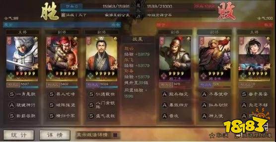 点评:由于与张飞同队,因此也加强了主动战法的输出。