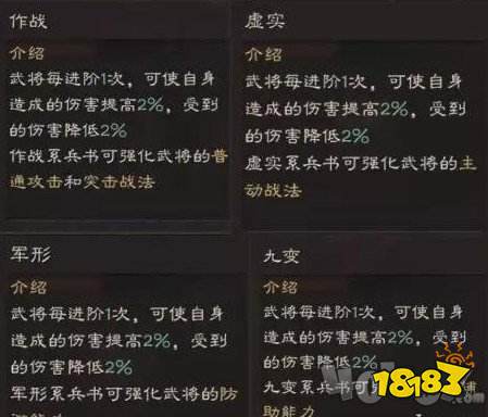 兵书系的开启,伴随着增伤、减伤的双重效果,通过进阶武将,最高可达10%。