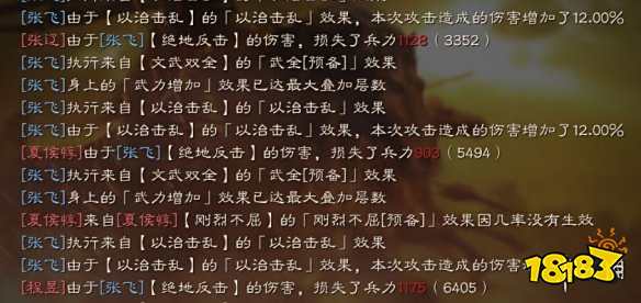 刘备的战法讲完,开始讲张飞的,文武双全+绝地反击。加上张飞自带战法燕人咆哮三个指挥/被动类战法,加上关羽带的虎卫,张飞的武力值能够提高到500+ 接近600,具体有多接近呢?