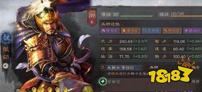 三国志战略版满级张郃属性介绍: