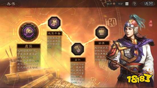 ①黄盖的出手速度从逻辑上来看,应该在周瑜和甘宁的前面,因为【苦肉计】能提前为周瑜火烧敌军点火,而先发动折冲御辱能更好地保护主将周瑜。遗憾的是,黄盖的速度天然迟缓,即使给他全加速度也很难追上嘟嘟和甘兴霸。只得放弃,而选择给他全加统率,然后在兵书上选择辅助类为我方友军分担伤害,比如诱敌之策。