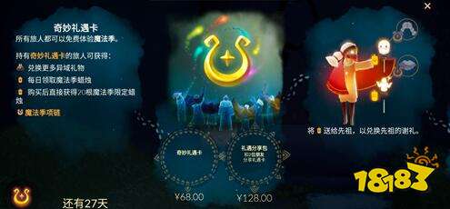 光遇奇妙礼遇卡值得买吗?奇妙礼遇卡买哪个价格的好?奇妙礼遇卡买68还是128的?游戏中奇妙礼遇卡的话就是里面的一个礼包,里面分别对应着两种价格啊,分别是68和128这两种的,价格差别还是很大的,一些玩家表示还是想买的但就是比较的纠结啊,下面来看看吧!