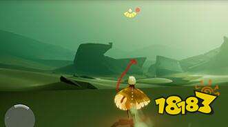 2、来到破船的附近,在天空中可以看到念之灵的红点。