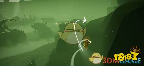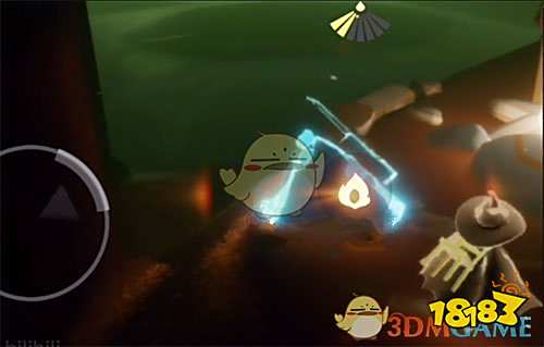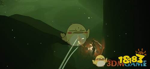 然后玩家往这个右边飞行,一直往上飞,飞到比较高的地方,往下看,玩家可以看到一个火篝,就是这个烤螃蟹的位置,然后在这里就可以看到这个黑金斗篷先祖了。