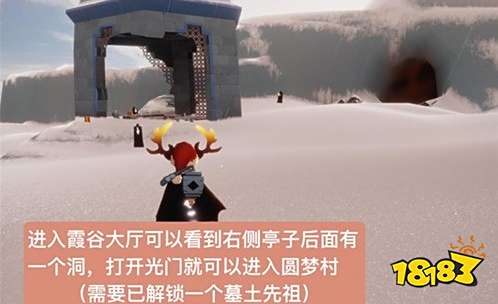1、进入霞谷大厅看到右边的山洞,需要解锁一位墓土先祖才能进去;