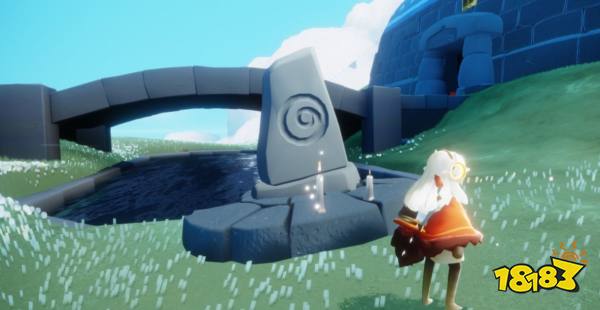 玩家到达尽头的宫殿后,可以在桥下的水池边上找到石碑,靠近石碑旁的光圈即可进行冥想。