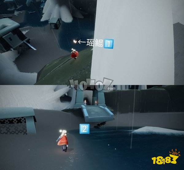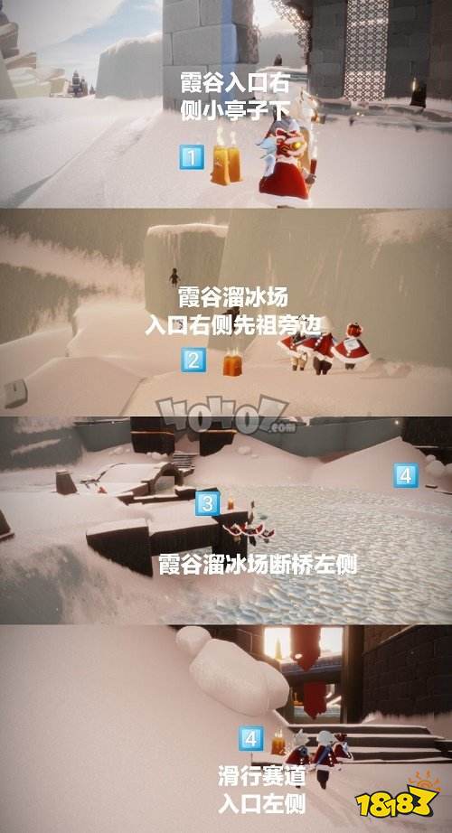 第二个大蜡烛的位置在霞谷溜冰场石台拐角处,我们进入到溜冰场之后能够在中间的石台上面看到这堆蜡烛。