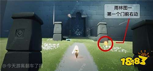 ③第三堆蜡烛在雨林第一扇门后左侧的先祖附近;