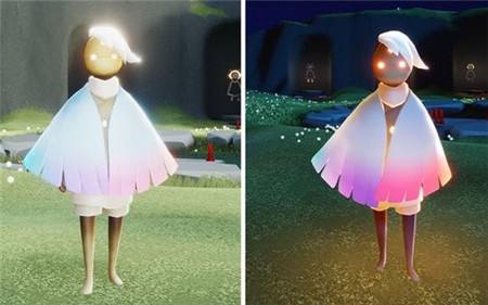 这件斗篷,不仅色调是彩虹,就连背上的星星图案,也是彩虹。从此在光遇这个游戏里,特殊的斗篷专属星翼,又添上浓墨重彩的一笔。