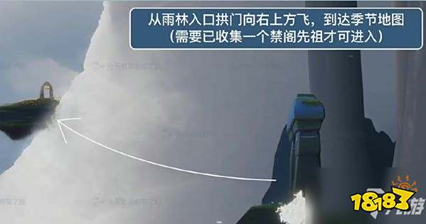 这个风行季里面的小金人就是光之翼,新上线的风行季新地图在雨林大厅右上方的云洞里面,我们需要完成一定的前置任务之后,这个地方才会开启。