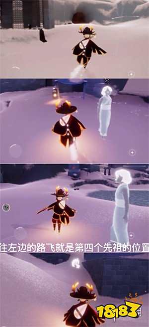 你们是可以从霞谷进入之后就可以从右边的洞口进入到圆梦村,你们是可以顺着滑道滑道底,就可以往左侧的房屋背后飞过去,在最左侧的两栋房子中间里看到先祖。