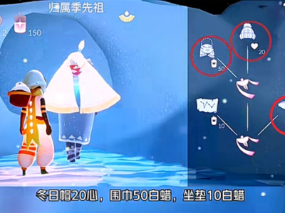 光遇2022圣诞节活动是返场的先祖老奶奶带给大家的归属季先祖,冬日帽20心,围巾50白蜡,坐垫10白蜡。