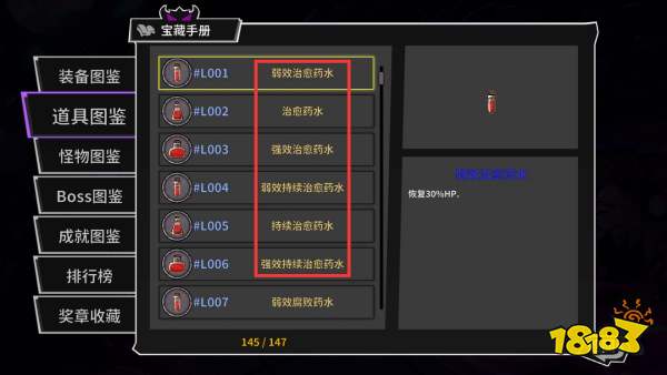 红色药水一共9种,分3类:持续回复、瞬间回复腐败药水(持续损血)。
