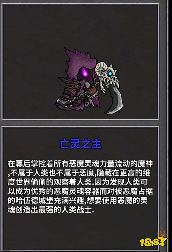 失落城堡四周目开启地狱模式后最终BOSS为亡灵之主(注:亡灵之主为本作真正结局,在进入堕落恶魔猎手的前一个房间,和老猎人对话三次,老猎人会给你一个宝物——灵魂结晶核,拥有此宝物才能进入隐藏boss关卡。若不开启地狱模式,则依旧为堕落的宝藏猎人,并以此不断循环即进入无限周目。)