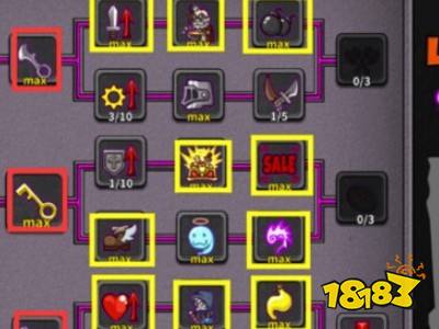 红色的框是先点的,黄色的是我推荐优先点的,大家自己因人而异,因为我点的时候没找到攻略,所以我是瞎点的,有啥更好的推荐各位大佬可以说出来,右边三大天赋,加血的先点,然后是攻击的,最后点中间的。这个游戏如果是键盘的话,初始按键是比较难受的,如果有毒奶粉玩家,可以z捡取x攻击c跳跃和上下左右键来,a和s用来切换d用来使用其他的因人而异了,相信这种按键对于毒奶粉玩家来说上手应该是最简单的,还有就是天赋的选择,我自己也不太记得天赋的流程是怎样的了,我只