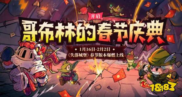 春节期间,哥布林堡垒换上了新春限定皮肤,它的小弟哥布林也会穿上红色小棉袄,丢出鞭炮。活动期间初次击败哥布林堡垒(春节庆典) 后,将在城堡随机库中永久解锁该boss主题的武器、装备和道具和神秘奖章。