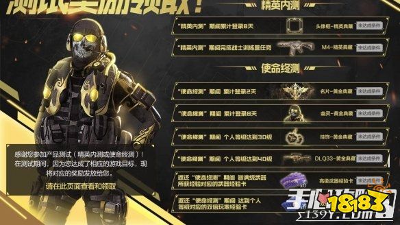 使命召唤手游内测奖励在哪里领呢?很多小伙伴对此都还不是特别的清楚,作为一名内测玩家,你可以领取非常多的奖励,18183小编就来带大家一起看看具体的领取方法。