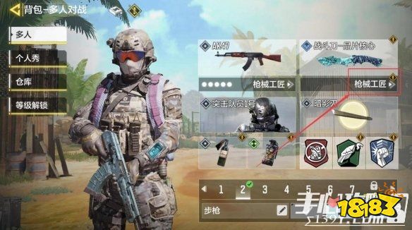 2.然后选择副武器,择枪械工匠。我们以战术刀为例。