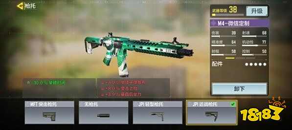 枪托:JPI近战枪托,依旧是用来增加开镜速度的,这边不选择无枪托的原因就是无枪托的缺陷对于新手玩家来说还是太大了,如果是新手刚上手还是推荐使用JPI近战枪托。