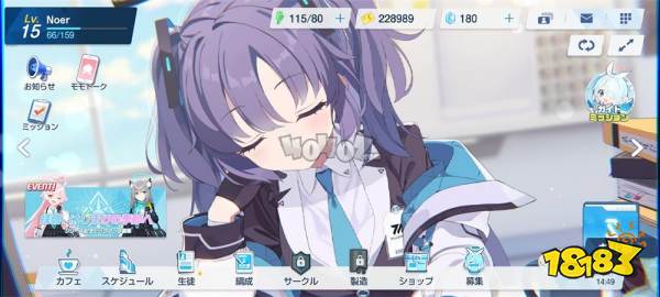 作为一款在上线前就在爱好者群体中打出不错名气的作品,《碧蓝档案》的游戏美术质量相当优秀。游戏整体的美术风格和名字中的“ブルー”相符,整体的UI设计以蓝色为主,通过浅蓝色和白色的组合营造出了一种很有夏季清新感的观感氛围。而游戏中的角色在人物设计和美术风格上也延续的UI的设计逻辑,大部分角色的立绘在上色上都采用了接近动画风格的大色块上色,并且有意的淡化了线条和阴影的表现,使得角色的立绘呈现出一种细腻清新的视觉观感。