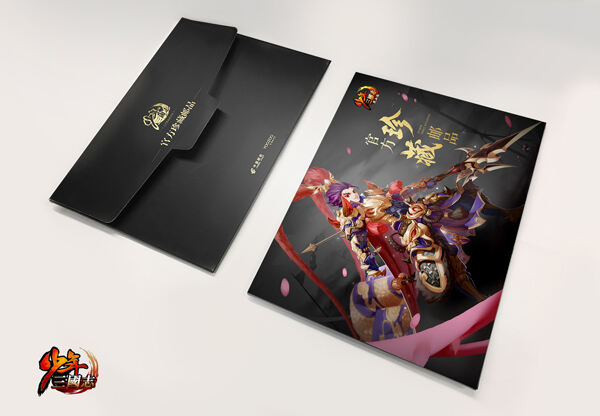 《少年三国志》“风华版”定制纪念邮册外包装盒正面有“官方珍藏邮品”字样,背景为吕布原画。内部的纪念邮品分邮册页与四张明信片两部分。邮册页主视觉是大小乔原画与8张“火焰神鸟”纹章样式的邮票,每张邮票面值为1.20元。明信片每张面值80分,正面为武将原画。邮品总体设计融合了经典国风与游戏特有元素。